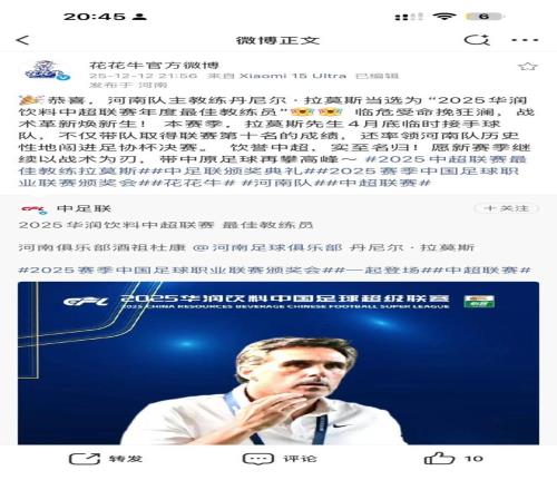 花花牛上一条河南队相关的微博停留在2025年12月21日